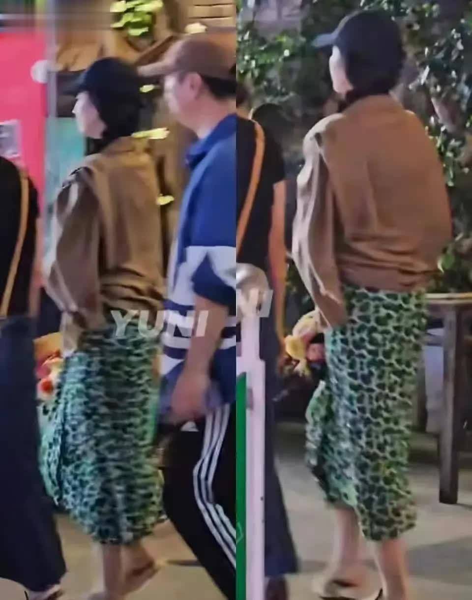 刘亦菲穿了一身碎花绿色连衣裙,还包了一条宽松的围巾,造型慵懒休闲,像度假,不过她穿什么衣服都很美。